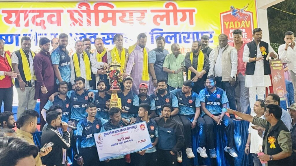 बिलासपुर में आयोजित यादव प्रीमियर लीग (YPL) सीजन-1 का फाइनल मुकाबला बेहद रोमांचक रहा। एसबीआई कॉलेज मैदान में खेले गए इस टूर्नामेंट के सेमीफाइनल मुकाबलों में जबरदस्त प्रतिस्पर्धा देखने को मिली, जिसमें नरसिंह-11 और बोल बम टीमों ने शानदार प्रदर्शन करते हुए फाइनल में अपनी जगह बनाई।