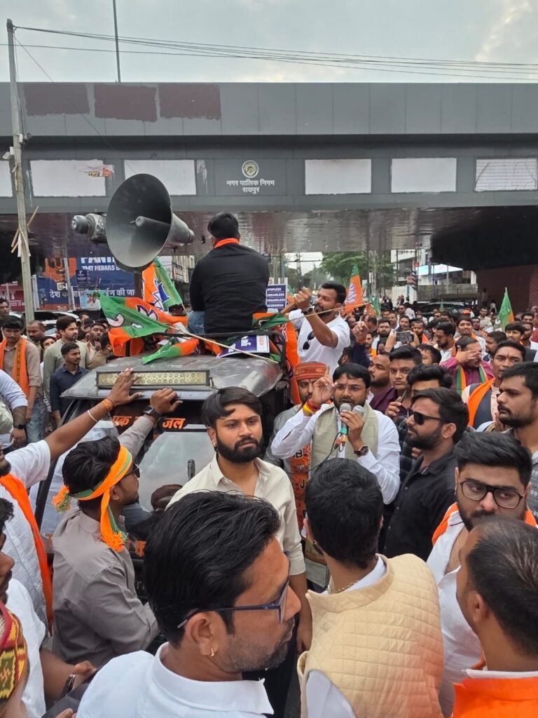 भाजयुमो कार्यकर्ता बड़ी संख्या में राजीव भवन की ओर कूच कर रहे थे। कांग्रेस दफ्तर से ठीक पहले शंकर नगर टर्निंग प्वाइंट पर पुलिस ने भारी बल तैनात कर बैरिकेडिंग की थी। पुलिस ने प्रदर्शनकारियों को रोकने का प्रयास किया, लेकिन कार्यकर्ताओं ने बैरिकेड्स तोड़ दिए और कांग्रेस भवन की दिशा में बढ़ गए। मौके पर कुछ देर तक धक्का-मुक्की और अफरा-तफरी की स्थिति बनी रही।