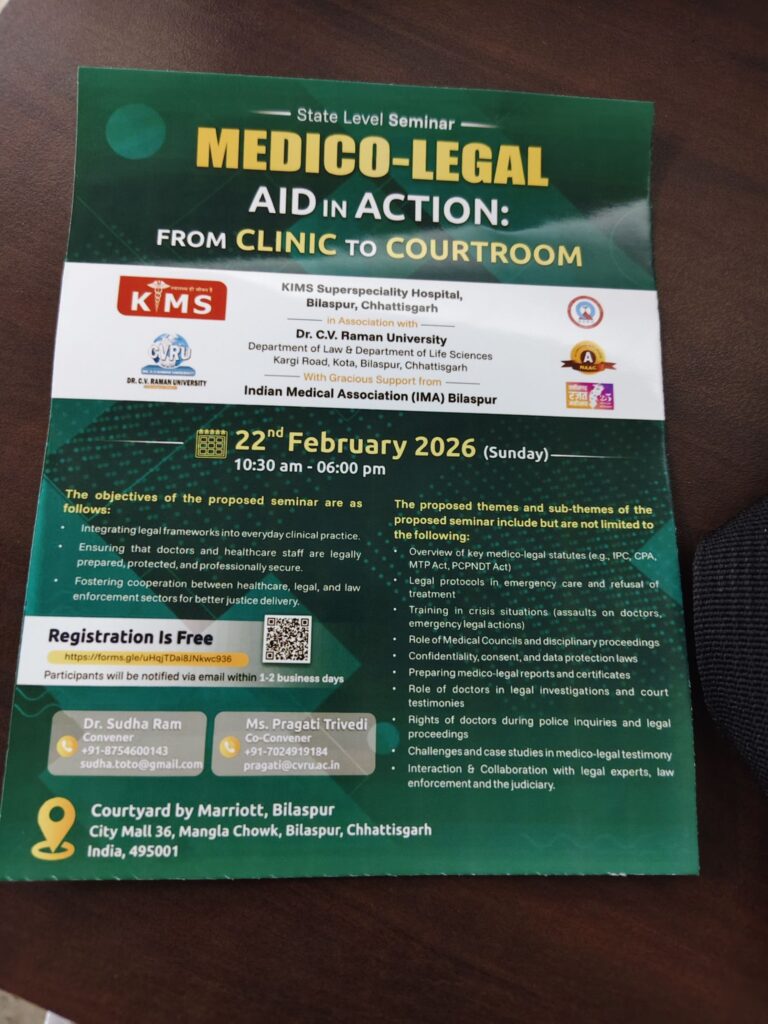 22 फरवरी को Courtyard by Marriott Bilaspur में ‘Medico-Legal: Aid in Action’ का आयोजन