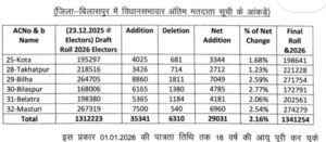 23.12.2025 (ड्राफ्ट प्रकाशन): 13,12,223 मतदाता