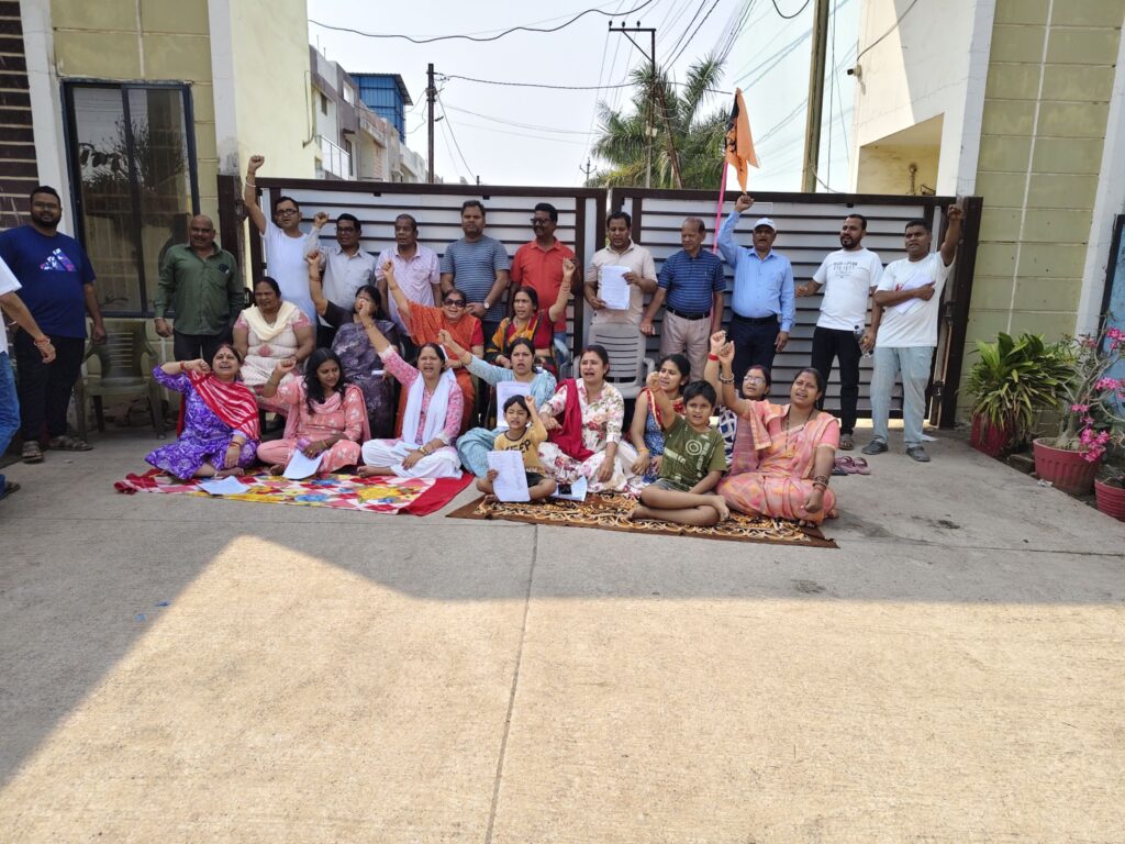 बिलासपुर। अशोक नगर सरकंडा स्थित ड्रीम इनक्लेव कॉलोनी के रहवासियों ने रविवार को बीच कॉलोनी से अटल आवास (ईडब्ल्यूएस भवन) के लिए रास्ता देने के विरोध में धरना प्रदर्शन किया। कॉलोनी वासियों का कहना है कि जब तक नगर पालिक निगम द्वारा अटल आवास के लिए पृथक मार्ग, पानी, नाली और बिजली की व्यवस्था नहीं की जाती, तब तक कॉलोनी के भीतर से आवागमन की अनुमति नहीं दी जाएगी।