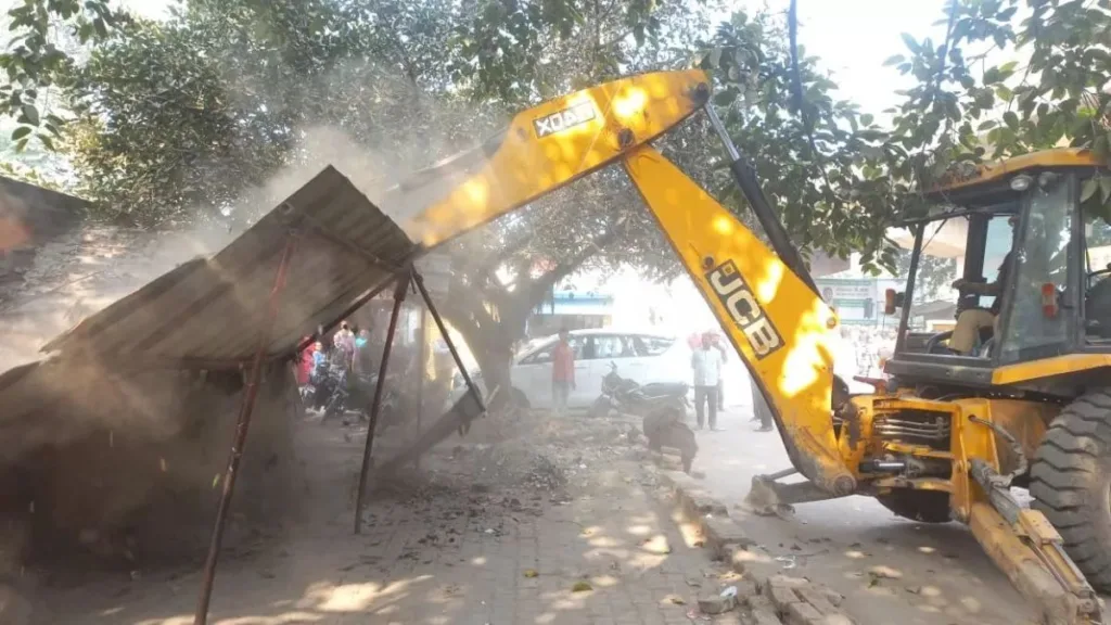 दूसरी कार्रवाई: भाजपा नेता के भाई की अवैध दुकान पर बुलडोजर