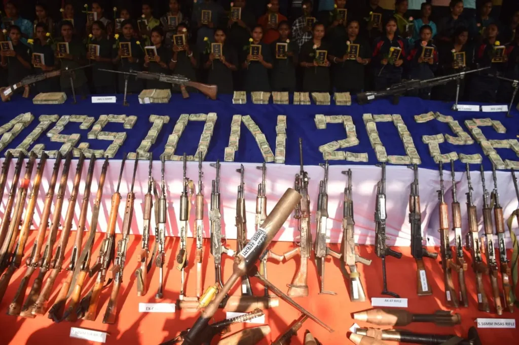 ₹3.29 करोड़ के इनामी कैडर मुख्यधारा में लौटे; 44 महिला नक्सली भी शामिल, 1 किलो सोना और करोड़ों की नकदी सुरक्षा बलों को सौंपी