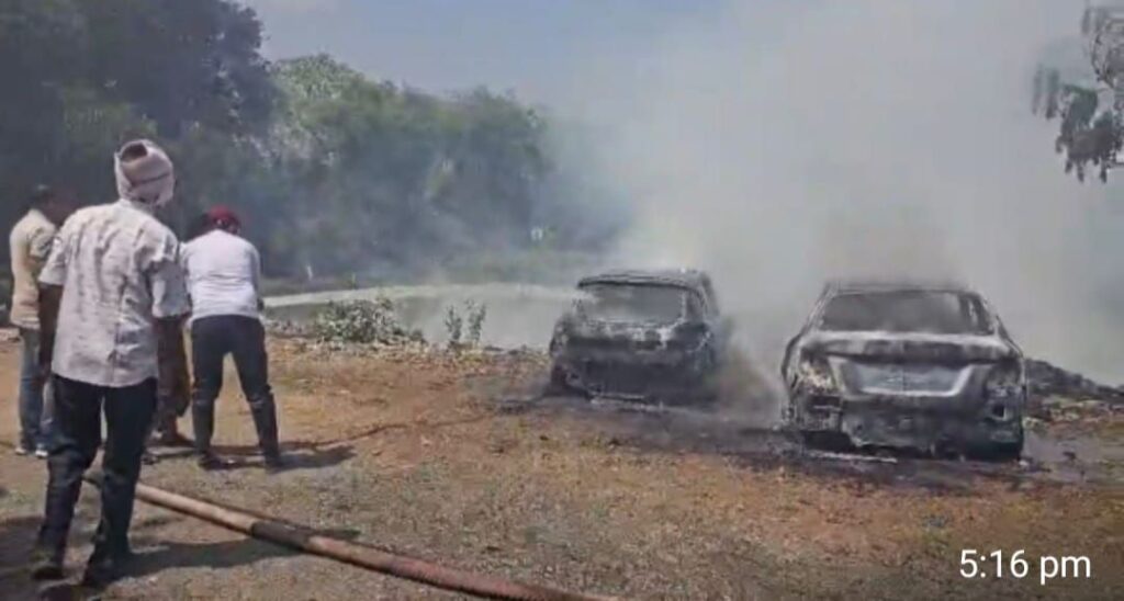 बिलासपुर, 21 मार्च। शहर के अरपापार क्षेत्र के पुराने सरकंडा दैहानपारा से लगे नए बसे मेघदूत नगर में शनिवार दोपहर कचरे के ढेर में लगी आग ने दो कारों को अपनी चपेट में ले लिया। दोनों वाहन पूरी तरह जलकर खाक हो गए। घटना के बाद इलाके में हड़कंप मच गया।