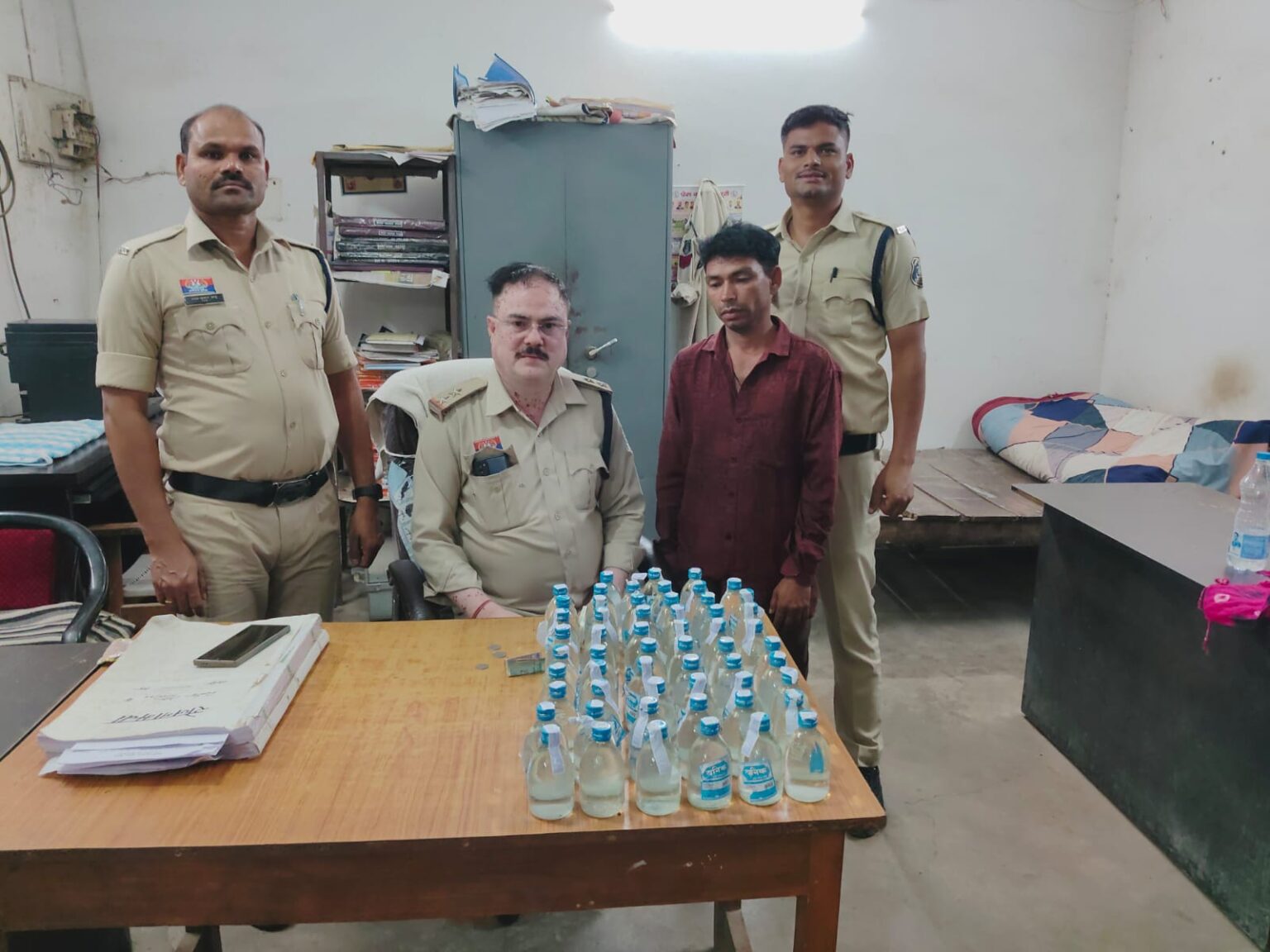 उप निरीक्षक अवधेश सिंह के नेतृत्व में आरक्षक किसान राय एवं रमेश साहू की टीम ने ग्राम ठाकुरदेवा स्थित आरोपी के किराना दुकान पर रेड कार्रवाई की। दबिश के दौरान आरोपी दुकान में ही शराब बेचते पाया गया। तलाशी लेने पर मौके से 55 नग प्लेन देसी शराब बरामद की गई।