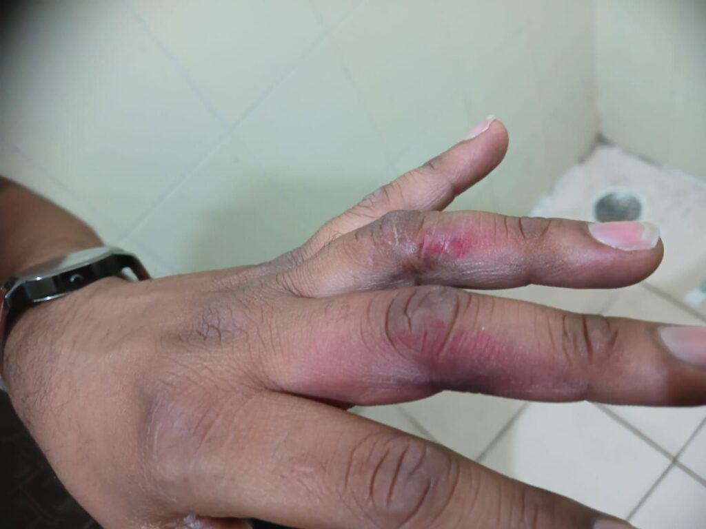 उंगलियों के आसपास फफोले उठ आए