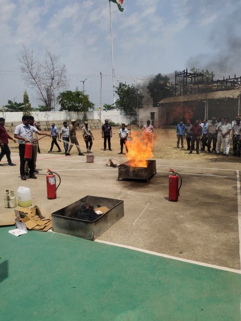 फायरमैन मोहन साहू और उमेश कश्यप ने लाइव डेमो के माध्यम से प्रशिक्षण दिया।