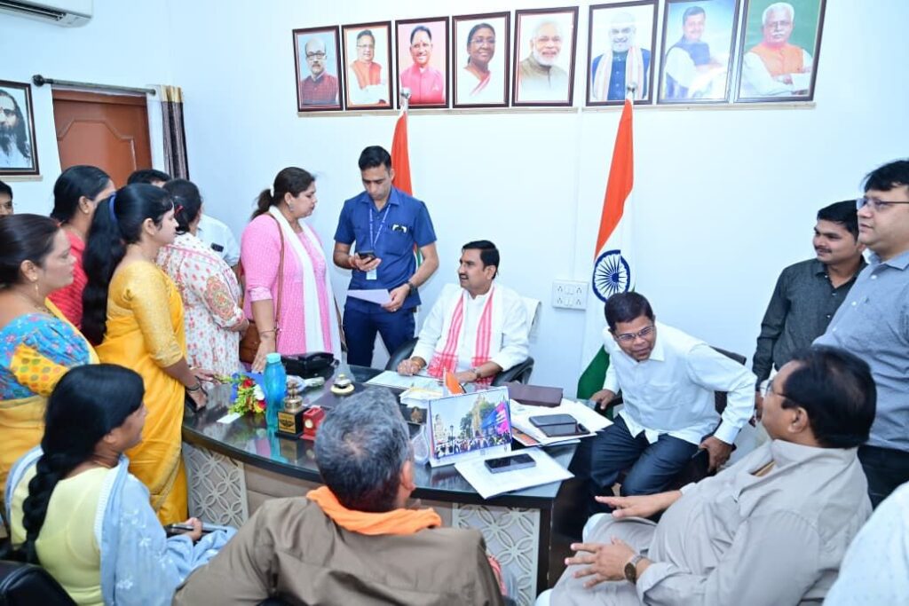 बिलासपुर। आवासन एवं शहरी कार्य राज्य मंत्री तोखन साहू ने बिलासपुर स्थित अपने निज कार्यालय में आयोजित जनदर्शन कार्यक्रम में सहभागिता की। इस दौरान उन्होंने आमजन से सीधे संवाद स्थापित कर उनकी समस्याओं एवं सुझावों को गंभीरतापूर्वक सुना।