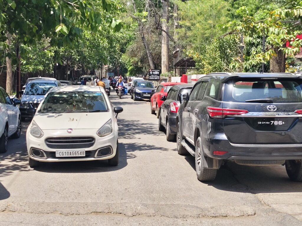 यातायात सुधार का दावा, लेकिन एसपी ऑफिस के पास ही ‘नो पार्किंग’ में जाम—मल्टीलेवल पार्किंग के बावजूद सड़कों पर कब्जा