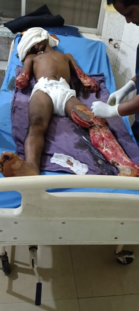 33 केवी हाईटेंशन लाइन की चपेट में आने के बाद उसका शरीर इस कदर झुलसा कि डॉक्टरों को उसकी जान बचाने के लिए दोनों हाथ काटने पड़े, और अब हालत ऐसी कि एक पैर काटने की तैयारी चल रही है। खबर लिखे जाने तक उसे बेहतर इलाज के लिए रायपुर रेफर कर दिया गया—जहां हर सांस एक लड़ाई बन चुकी है।