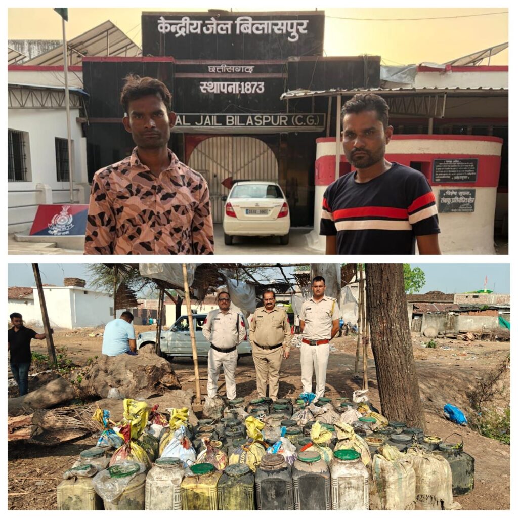 बिलासपुर। जिले में अवैध शराब के खिलाफ आबकारी विभाग की सख्त कार्रवाई लगातार जारी है। सघन गश्त और विशेष अभियान के तहत 25 अप्रैल 2026 को एक बार फिर बड़ी कार्रवाई करते हुए टीम ने दो आरोपियों को गिरफ्तार कर जेल भेज दिया, वहीं बड़ी मात्रा में अवैध महुआ शराब और लाहन नष्ट किया गया।