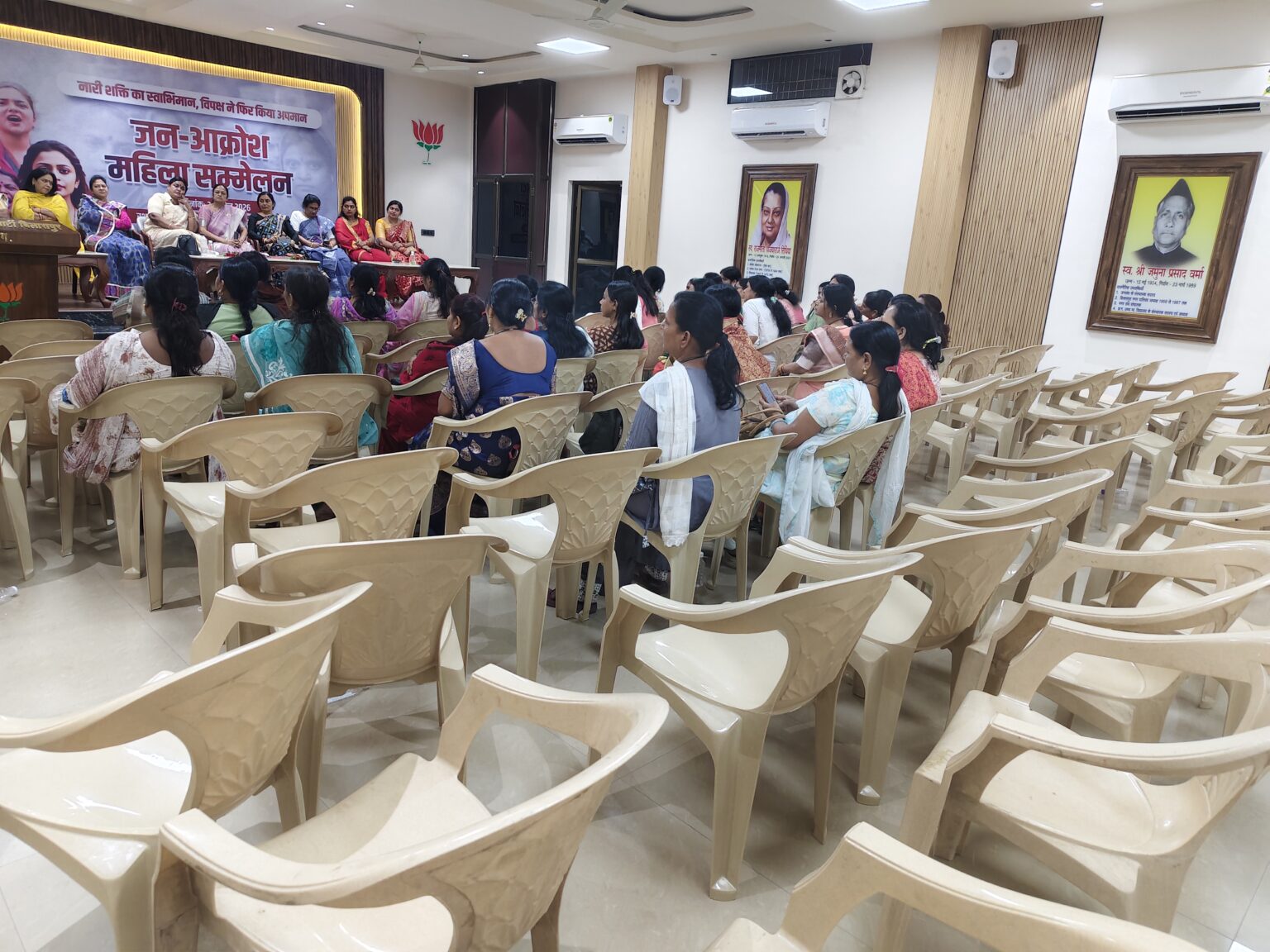 बिलासपुर। भारतीय जनता पार्टी महिला मोर्चा द्वारा रविवार को आयोजित जिला स्तरीय जन आक्रोश महिला सम्मेलन राजनीतिक संदेश देने से ज्यादा संगठन की जमीनी हकीकत उजागर करता नजर आया। नारी शक्ति वंदन अधिनियम में प्रस्तावित संशोधन के मुद्दे पर बुलाए गए इस सम्मेलन में मंच तो सजा, पदाधिकारी भी पहुंचे, लेकिन कार्यकर्ताओं की गैरमौजूदगी ने पूरे आयोजन की धार को कमजोर कर दिया।